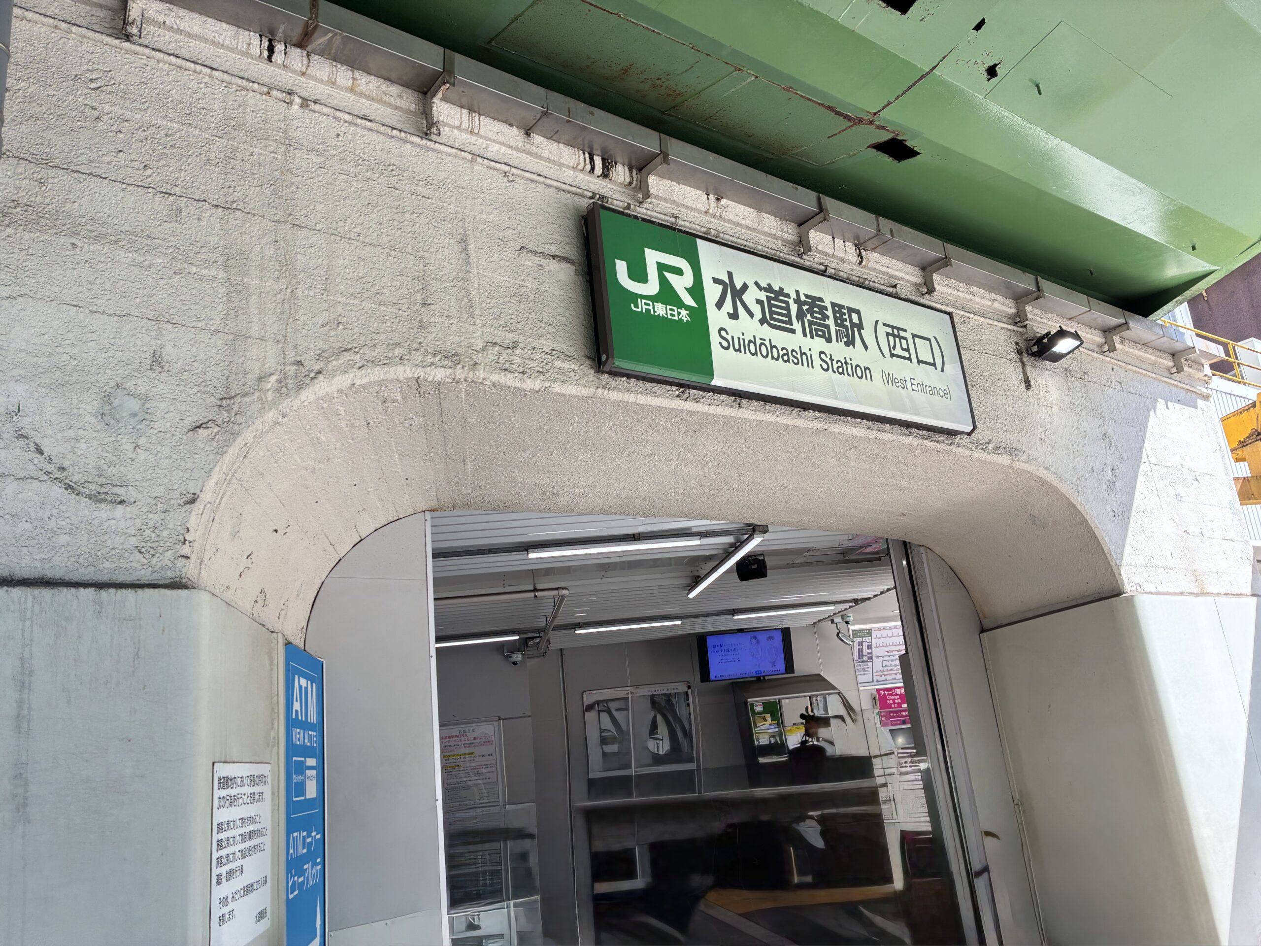 1.西口正面の横断歩道(水道橋西通り)を渡ります(正面はスギ薬局)。
