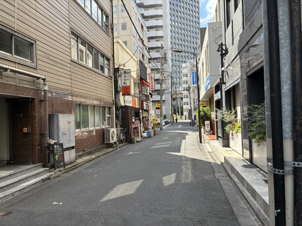 2.信号を渡ったら、左方向に進み、最初の路地を右折します。